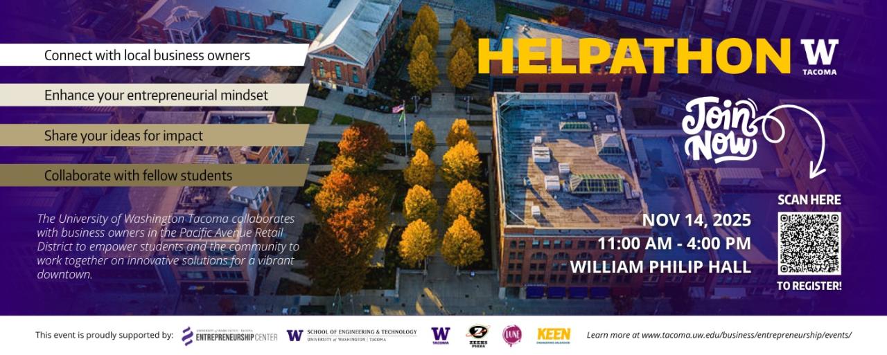 Entrepreneurship is everywhere at UW Tacoma. Across our campus and our community, people are engaged in generating ideas, solving problems, building solutions, and fulfilling needs to create value for others.