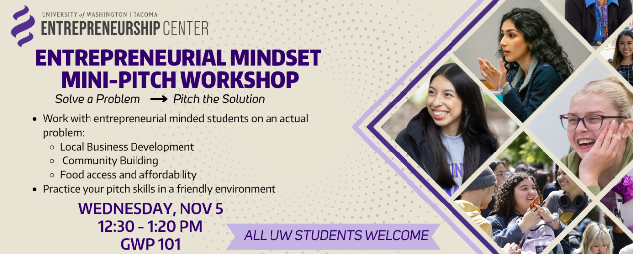 Entrepreneurship is everywhere at UW Tacoma. Across our campus and our community, people are engaged in generating ideas, solving problems, building solutions, and fulfilling needs to create value for others.