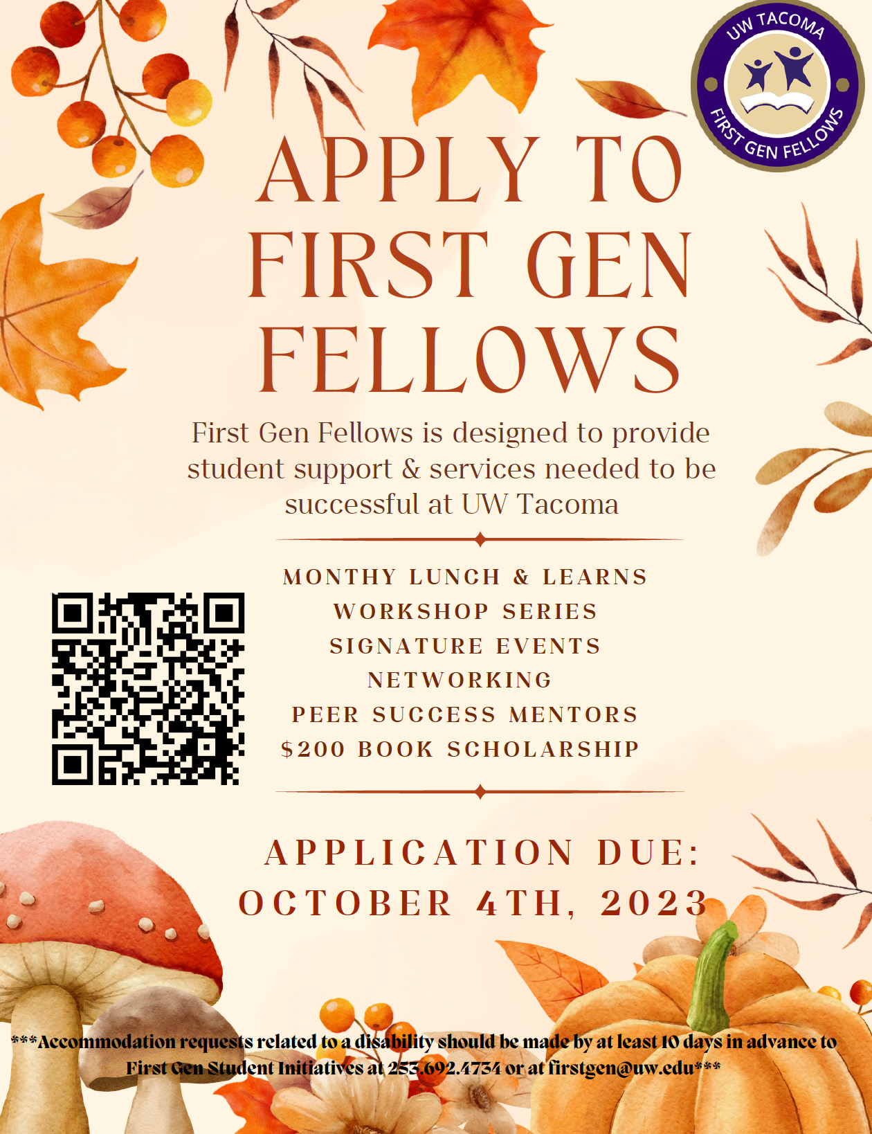 First Generation Fellows is a cohort-based program that provides individualized support to sophmore and transfer first-gen students. Students benefit from support programs, services, and extensive campus referral networks that help enrich their academic life.