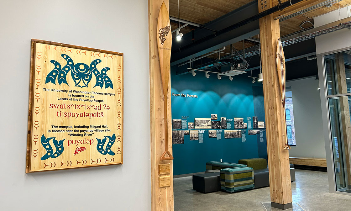 A new display and permanent land acknowledgement in Milgard Hall celebrate our partnership with the Puyallup Tribe.