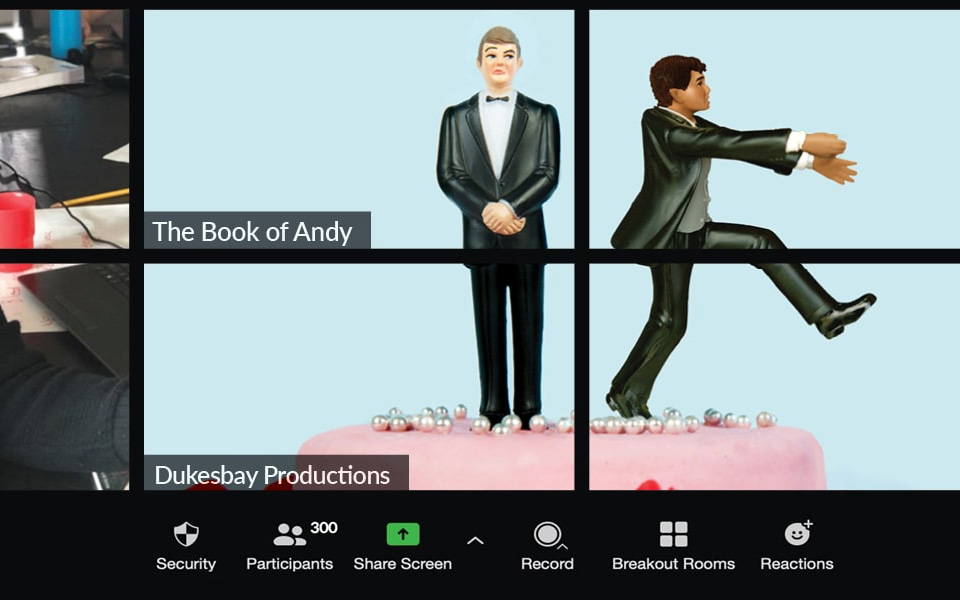 Choosing a platform is one of many things Bandes B. Weingarden has to figure out. “Normally we spend a lot of time in rehearsals working on movement,” she said. “This time we don’t have this to contend with in the same degree as a live show, but we’ll still need to figure out lighting, props and what to do if there’s a glitch.”