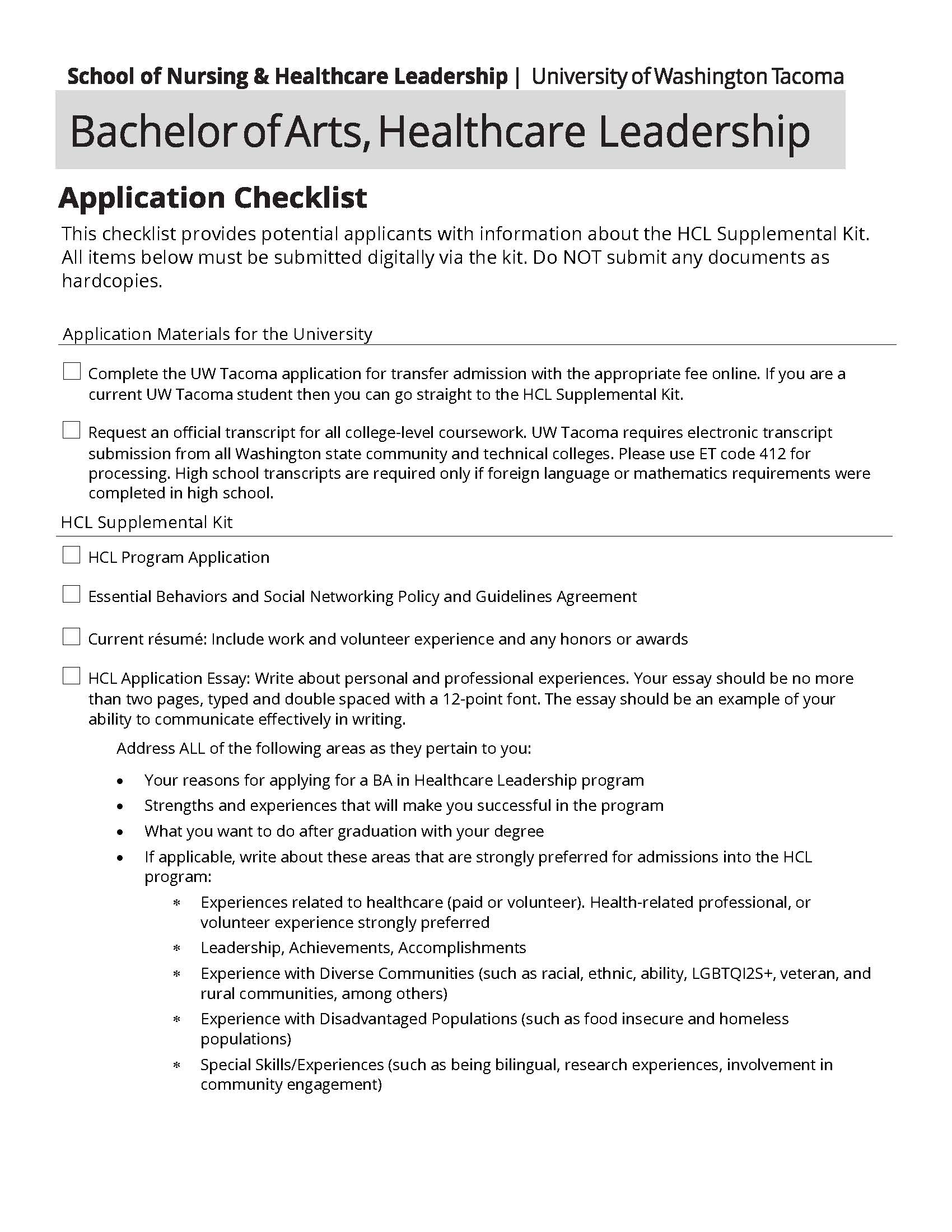 Students interested in declaring Healthcare Leadership as their major must meet the following requirements prior to enrolling: